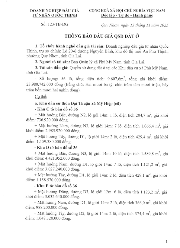 Thứ sáu, 28/11/2025 | 14:26 A- A A+ | THÔNG BÁO ĐẤU GIÁ QUYỀN SỬ DỤNG ĐẤT NĂM 2025 Chia sẻ Đọc bài Lưu Tập tin đính kèm Trình duyệt không hỗ trợ iframe.