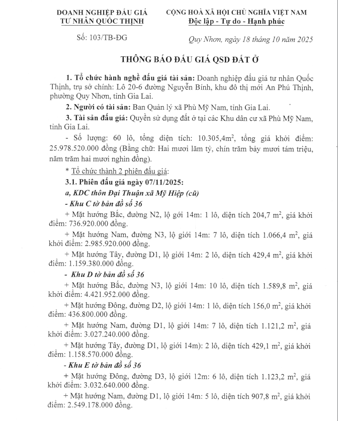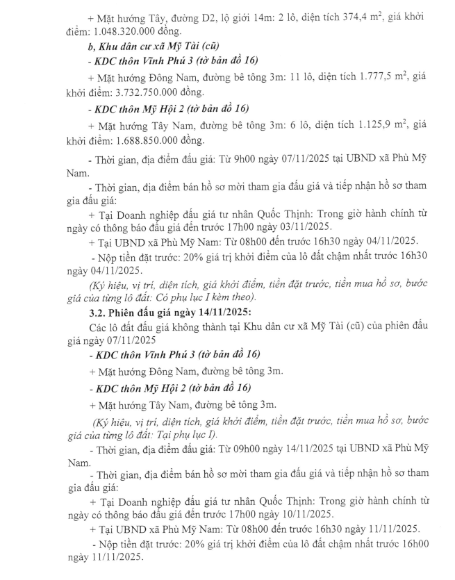 Thứ hai, 03/11/2025 | 13:40 A- A A+ | THÔNG BÁO ĐẤU GIÁ QUYỀN SỬ DỤNG ĐẤT Chia sẻ Đọc bài Lưu THÔNG BÁO ĐẤU GIÁ QUYỀN SỬ DỤNG ĐẤT XÃ PHÙ MỸ NAM Tập tin đính kèm Trình duyệt không hỗ trợ iframe.