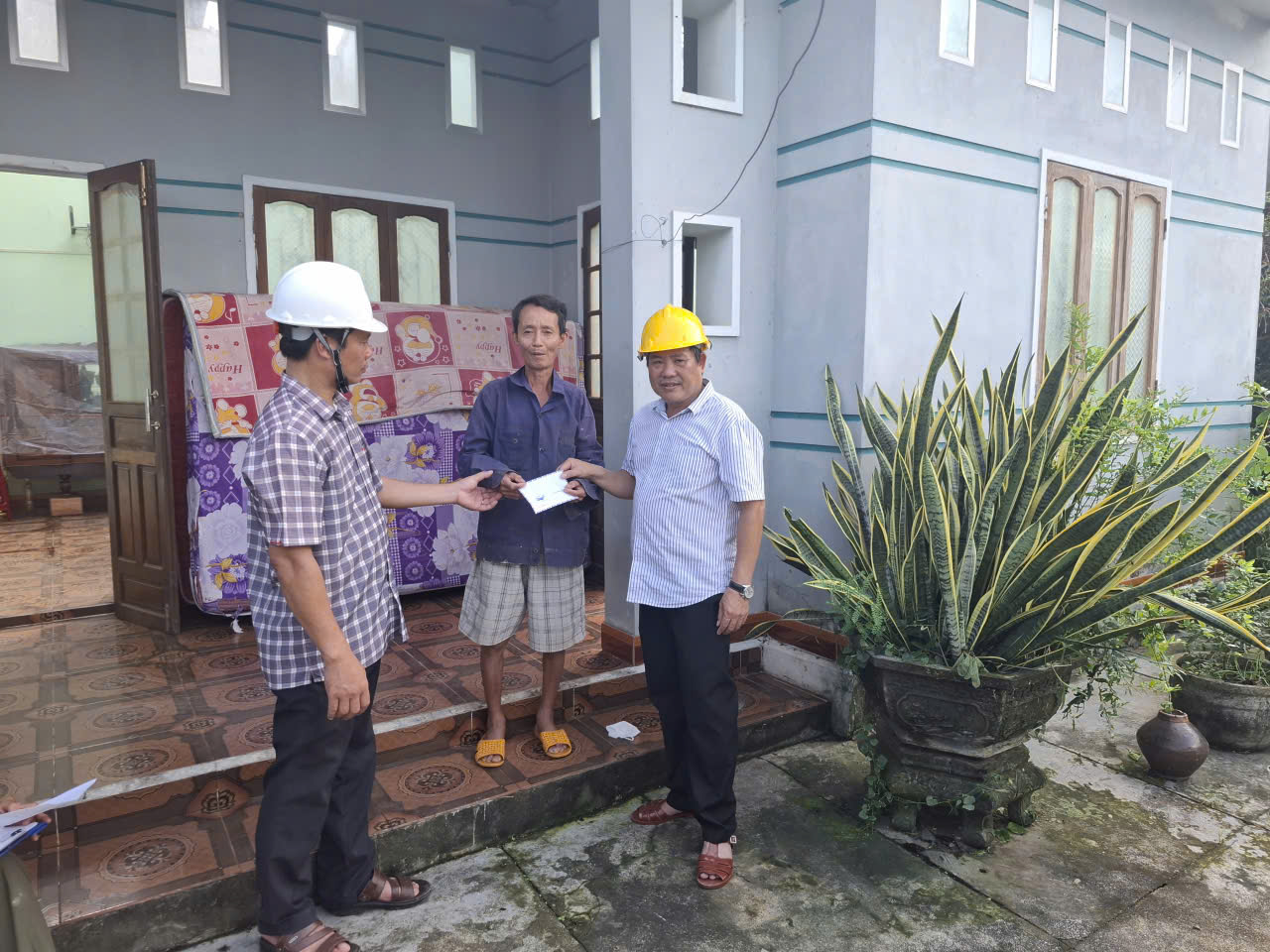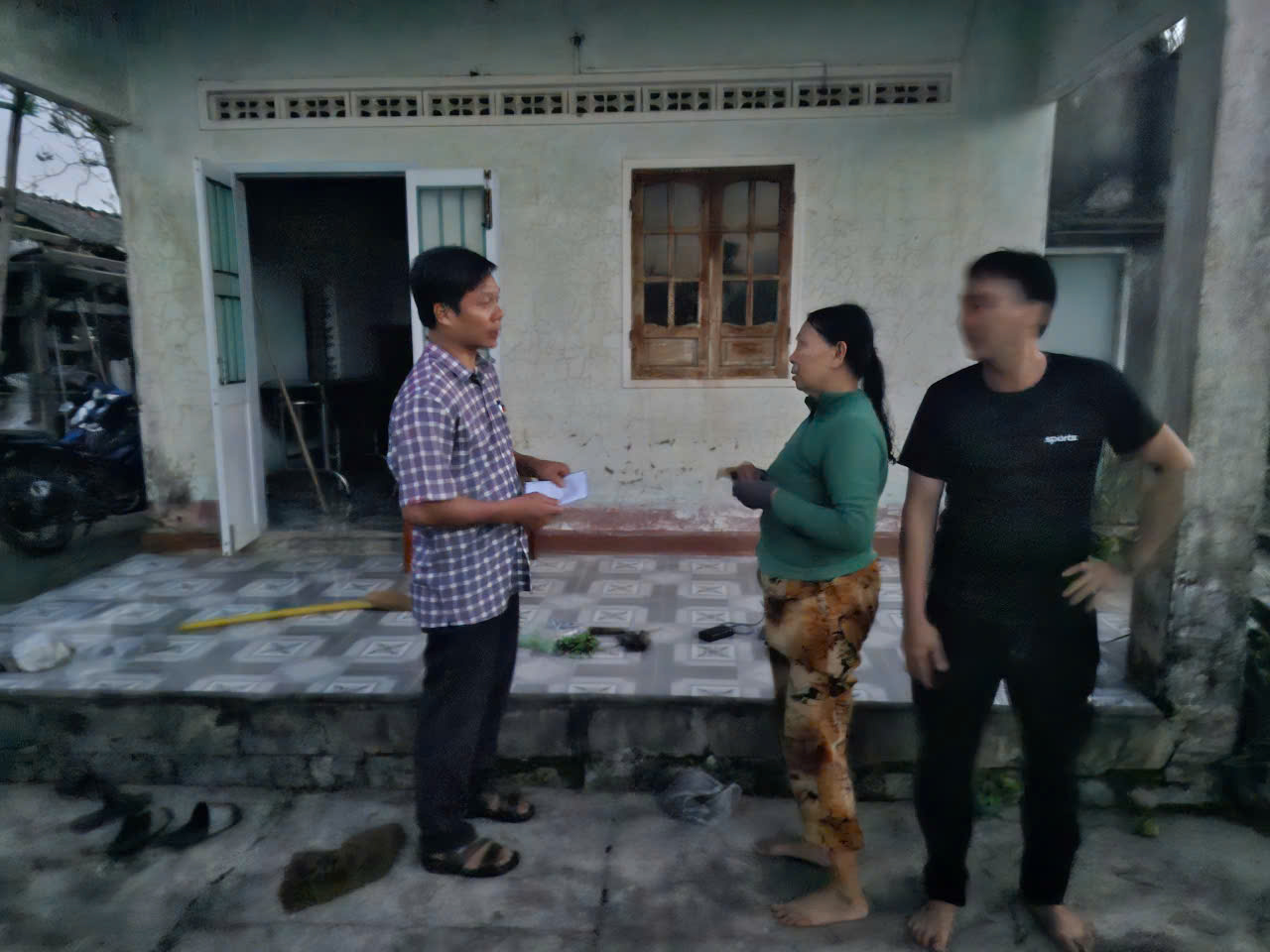 Đồng chí Nguyễn Thị Thu Phương - CT UBND xã cùng đồng chí Phạm Quốc Ánh - PCT UBND xã thăm tại thôn Bình Tân Đông