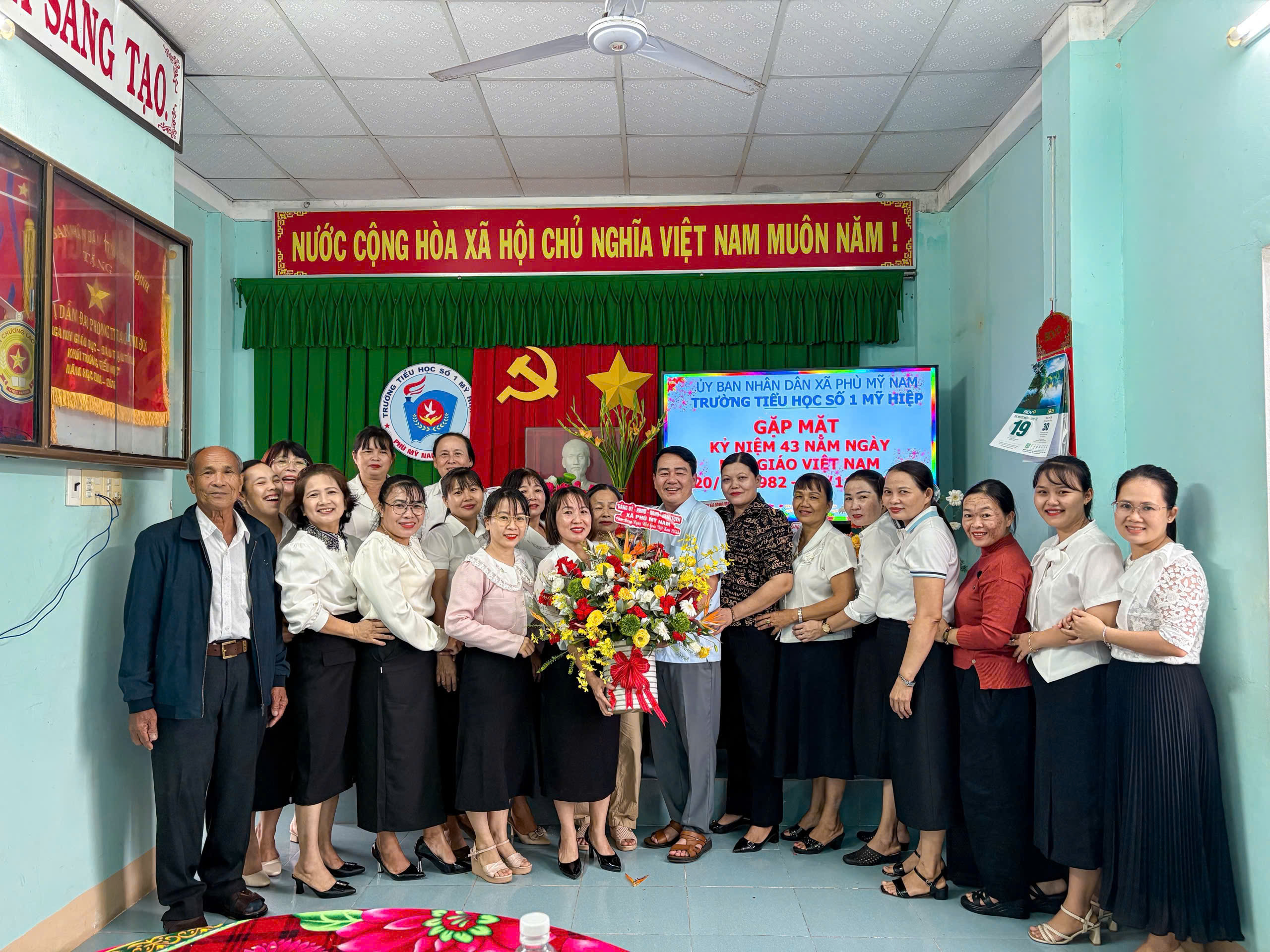 Đồng chí Nguyễn Văn Đạo - PCT UBND xã đến thăm và chúc mừng ngày 20/11 tại trường TH số 1 Mỹ Hiệp