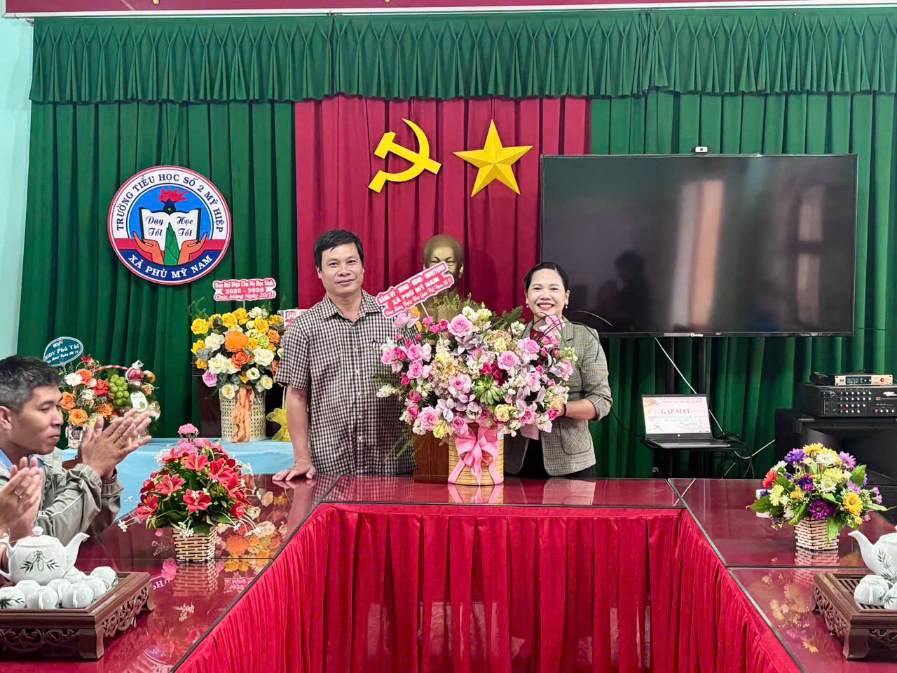 Đồng chí Phạm Quốc Ánh - PCT UBND xã đến thăm và chúc mừng ngày 20/11 tại trường TH số 2 Mỹ Hiệp