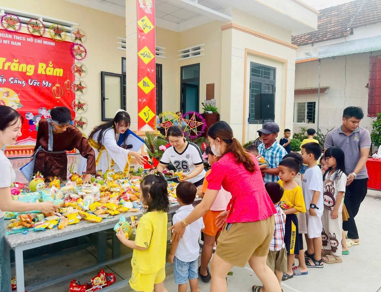 Chương trình đã mang đến cho hơn 350 em thiếu nhi một đêm hội đầy sắc màu với các tiết mục văn nghệ, múa lân, trò chơi dân gian và phá cỗ Trung thu vui tươi, ý nghĩa. Nhân dịp này, 70 suất quà Trung thu đã được trao tặng cho các em thiếu nhi có hoàn cảnh khó khăn, thể hiện sự quan tâm, chăm lo của cấp ủy, chính quyền và tổ chức Đoàn - Hội đối với thế hệ măng non của địa phương. Đây là hoạt động thiết thực, góp phần mang đến niềm vui, động viên các em nỗ lực học tập, rèn luyện thật tốt, xứng đáng là con ngoan trò giỏi, cháu ngoan Bác Hồ.
