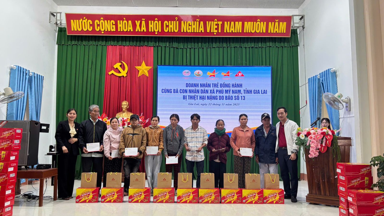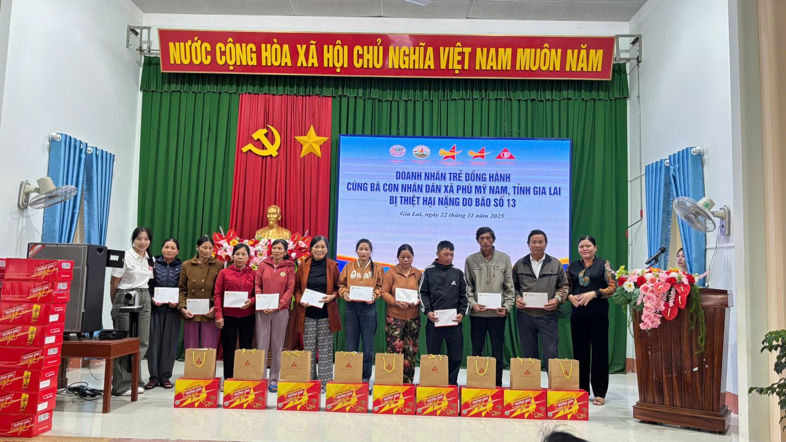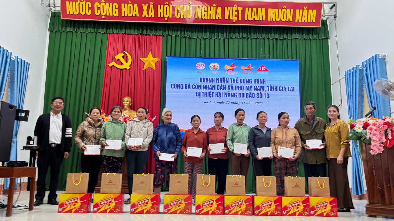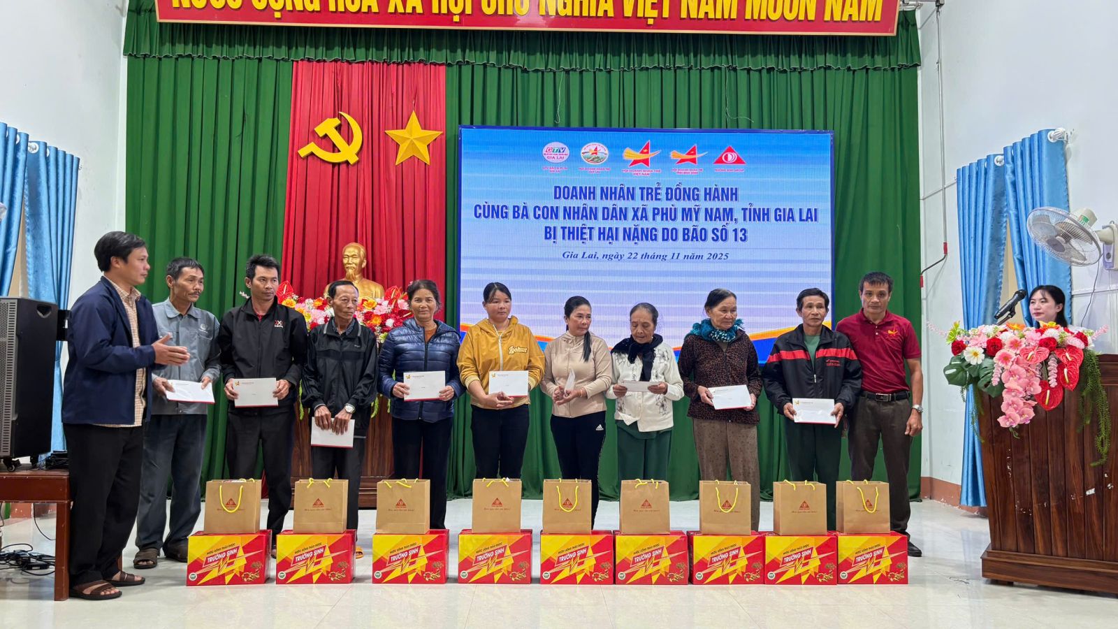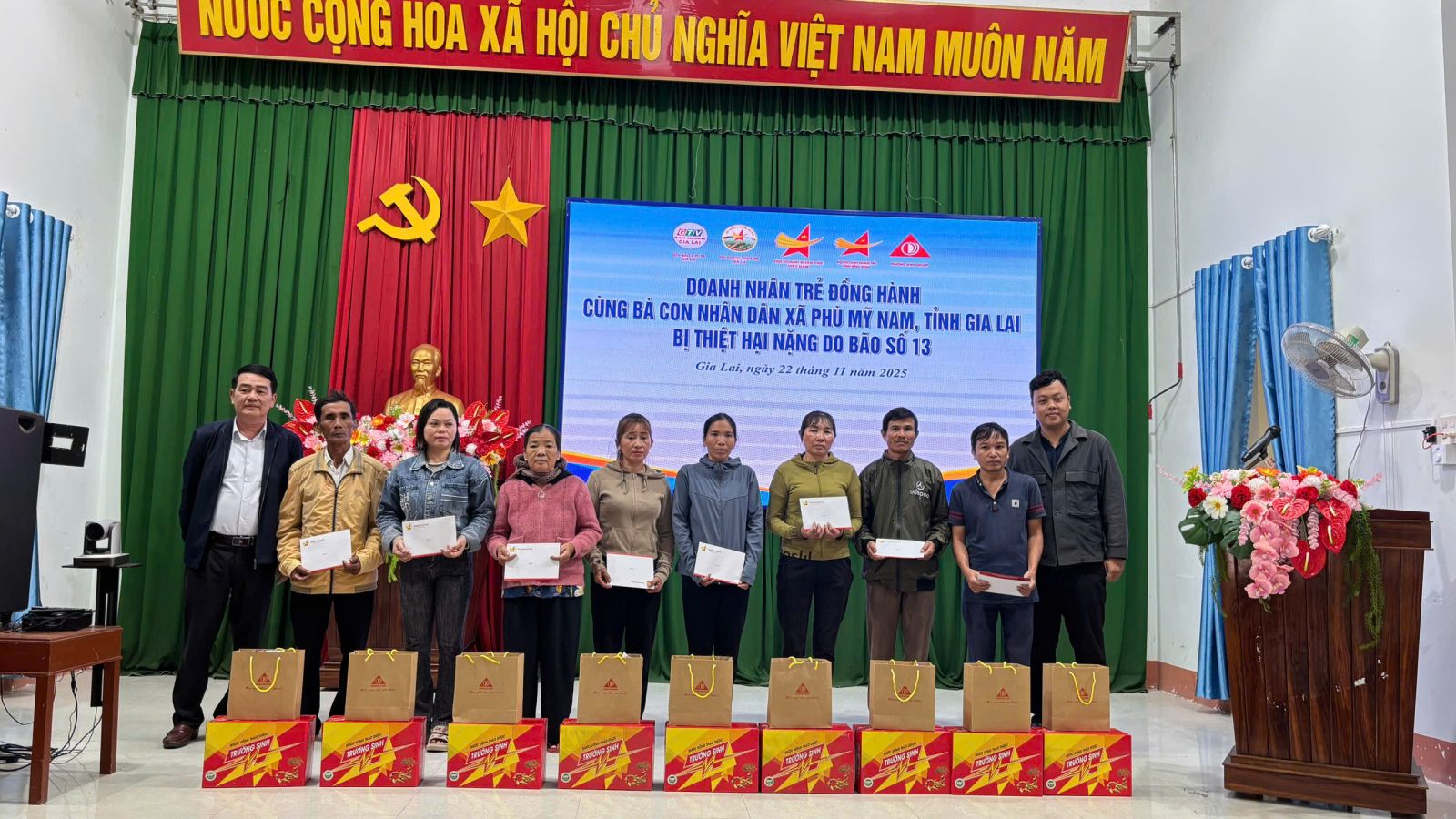 Ngày 22-11, UBND xã Phù Mỹ Nam phối hợp Hội Doanh nhân trẻ Gia Lai, Hội Doanh nhân trẻ Bình Định, Trường Sinh Group, Báo và phát thanh, truyền hình Gia Lai cùng phối hợp tổ chức Chương trình doanh nhân trẻ đồng hành cùng người dân bị thiệt hại nặng do cơn bão số 13 tại xã Phù Mỹ Nam.
