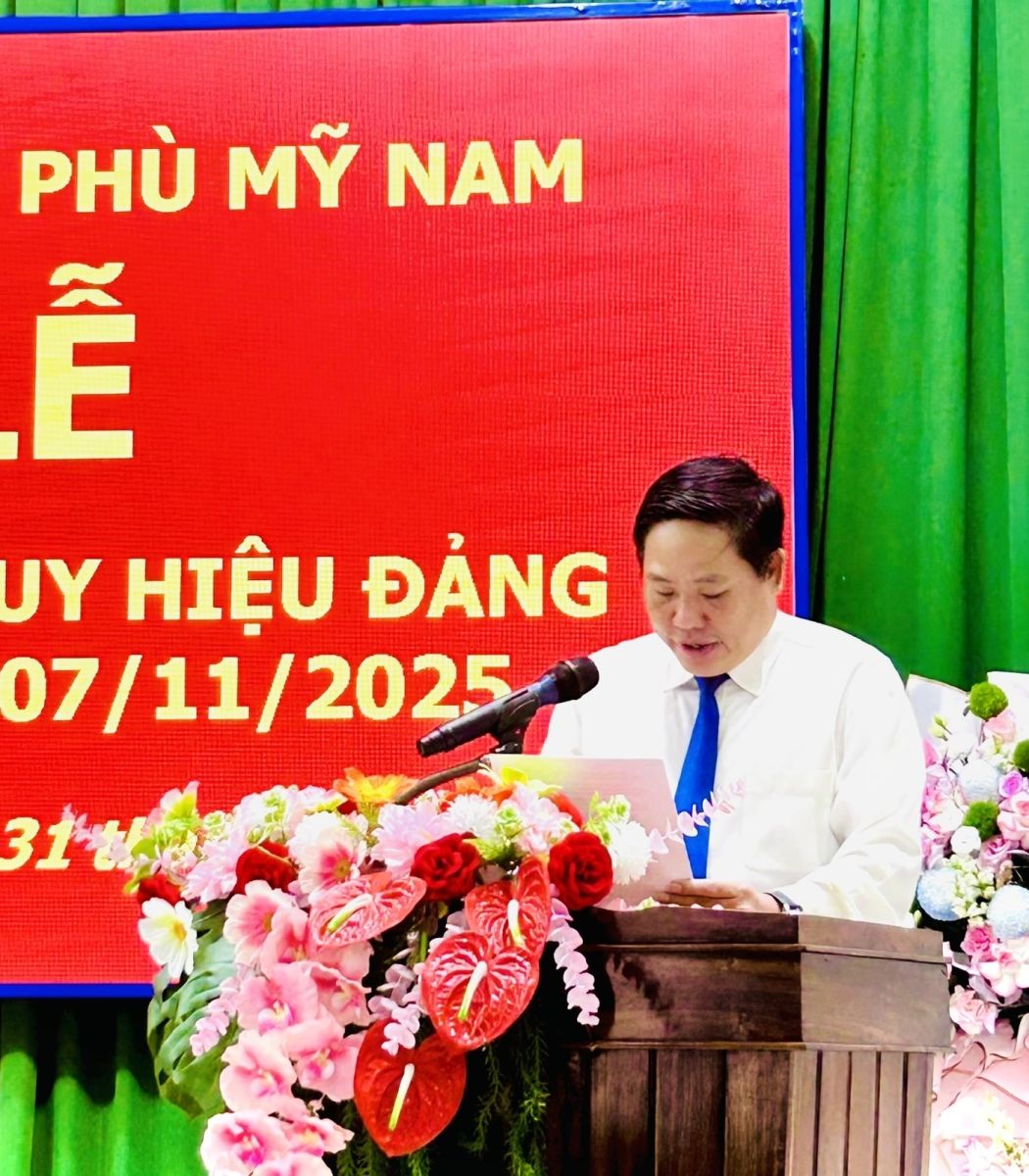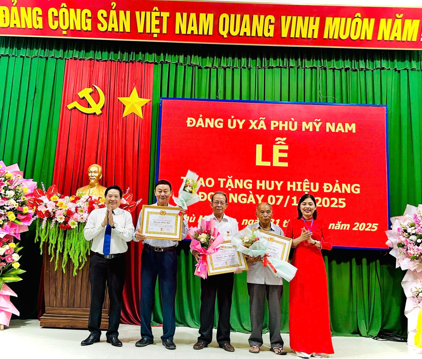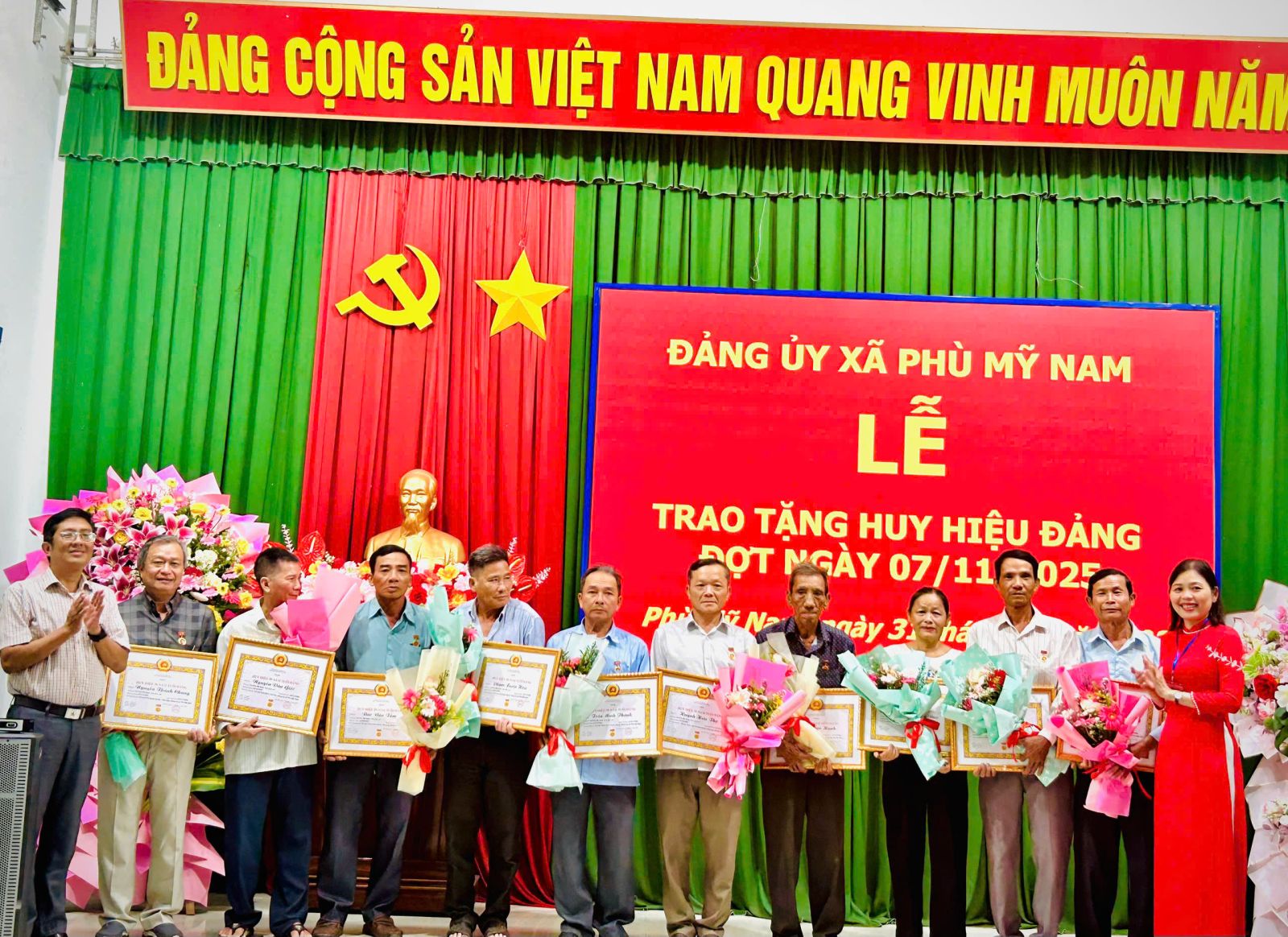 Sáng ngày 31/10/2025, Ban Thường vụ Đảng ủy Phù Mỹ Nam tổ chức Lễ trao tặng Huy hiệu Đảng đợt 7/11 cho các đồng chí đảng viên nhân kỷ niệm 108 năm Cách mạng Tháng Mười Nga (7/11/1917 - 7/11/2025). Đến dự có đồng chí Bùi Quang Nhựt - Bí thư Đảng ủy, Chủ tịch HĐND xã, các đồng chí trong Ban Thường vụ Đảng ủy xã; thường trực HĐND, lãnh đạo UBND, Ủy ban MTTQ Việt Nam xã, các ban, ngành, đoàn thể chính trị - xã hội, các đồng chí bí thư các chi bộ trực thuộc, trưởng thôn và các đảng viên được trao huy hiệu Đảng.