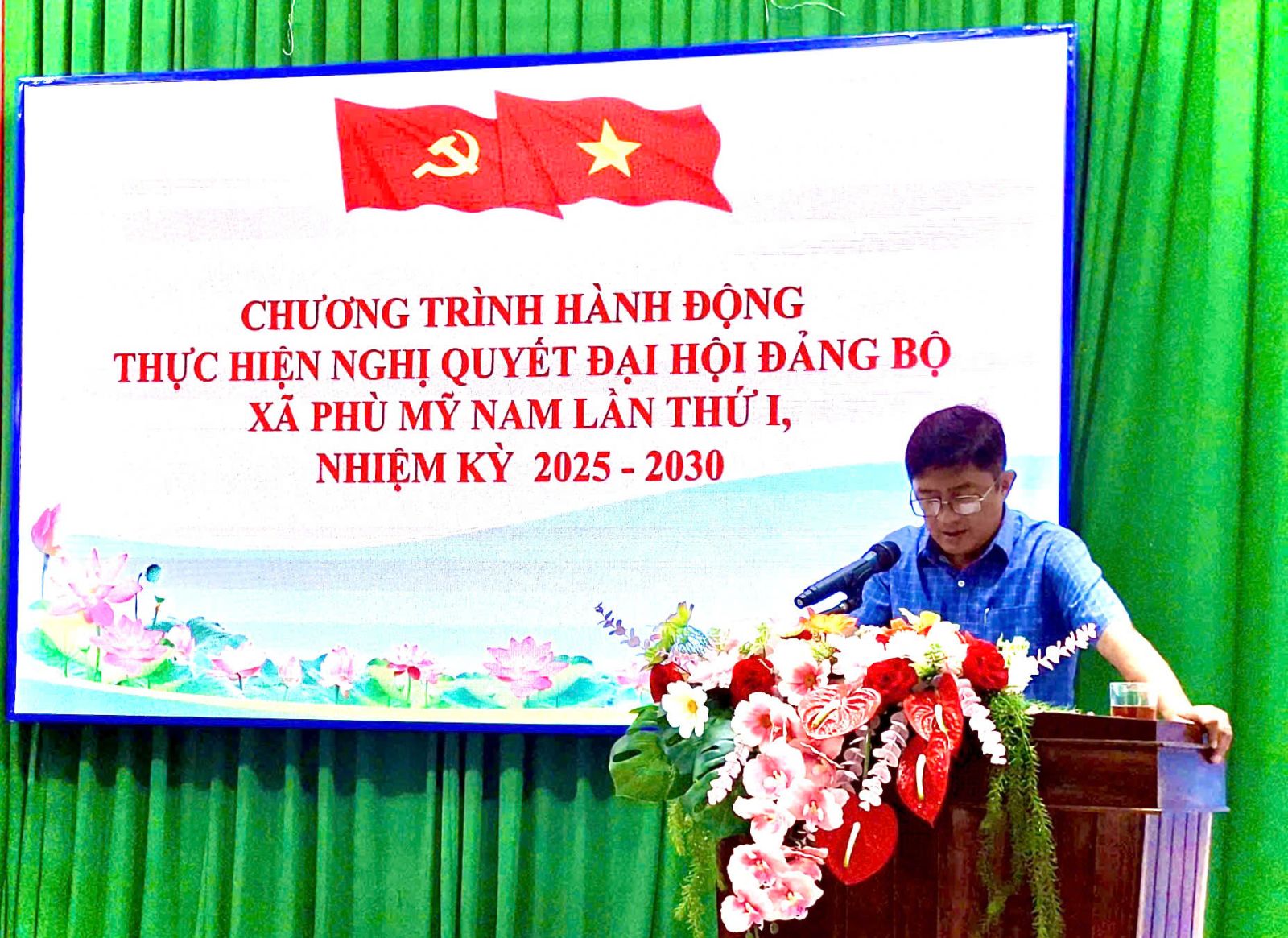 Tại hội nghị, đồng chí Phó Bí thư Thường trực Đảng ủy xã Phạm Thanh Bình đã quán triệt, triển khai những nội dung cốt lõi của Nghị quyết Đại hội đại biểu Đảng bộ tỉnh Gia Lai và xã Phù Mỹ Nam. Tại Đại hội Đảng bộ tỉnh Gia Lai nhiệm kỳ 2025 - 2030 đã thống nhất thông qua 33 chỉ tiêu chủ yếu. Trong đó có: 10 chỉ tiêu về kinh tế; 14 chỉ tiêu về xã hội; 7 chỉ tiêu về môi trường và 2 chỉ tiêu về xây dựng Đảng.